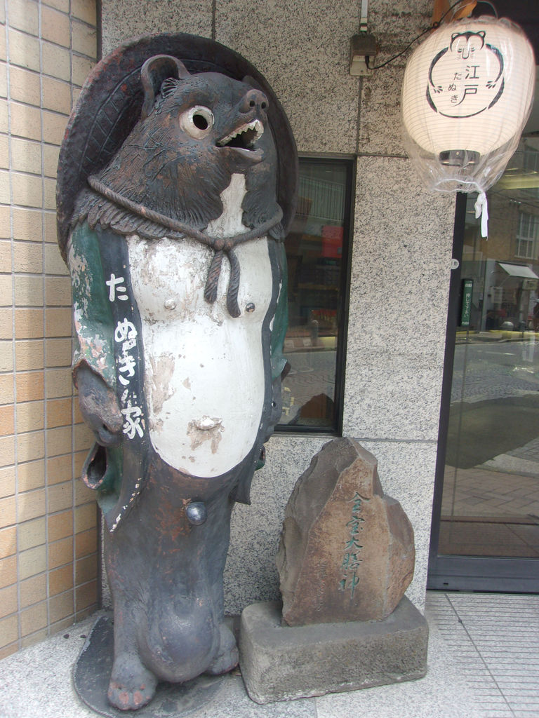 たぬきさんの足元には「全宝大膳明神」の碑が。昭和33年12月全国の狸愛好家の寄進によって建立されました。この話は富田狸通先生著「たぬきざんまい」に詳しく載っています。富田先生が住む愛媛の方へ当時東京狸会の副会長をされていた、たぬき煎餅初代・日永圓蔵氏が来道したときに語った話によりますと、昭和4年、狸の宣託があったことから小祠を建てて祀って、狸に言われたとおり日々精進なされていたそうです。2年後、たぬき煎餅は宮内省御用達のご用命があり、トントン拍子にお店は繁盛していったそうな。狸すごい( ・ิω・ิ)