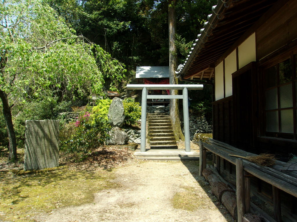 江戸時代末期、下津池の峠に老婆が一人で住んでいて、狸がのりうつり、老婆は焼け死んでしまいました。老婆は焼け死にましたが、狸は焼け残って災いをおこします。村人三軒がお祀りしていましたが、明治のはじめ頃、村でお祀りするようになって、氏神さんの境内へ移されました。