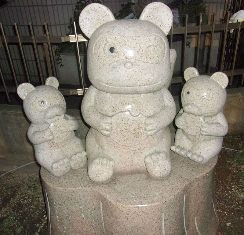 草加駅前一番通り商店街のマスコットキャラクター・たぬきの親子像