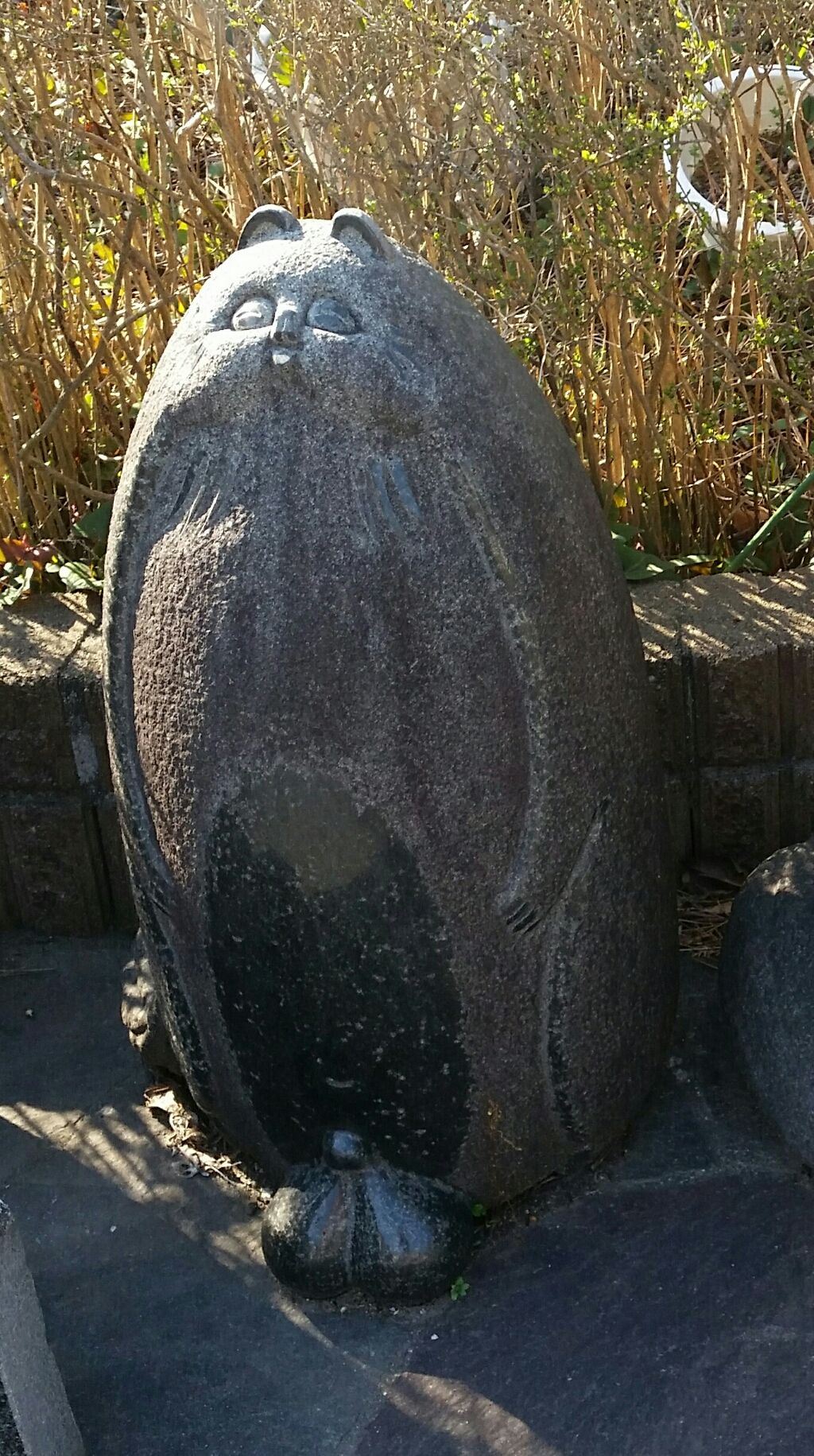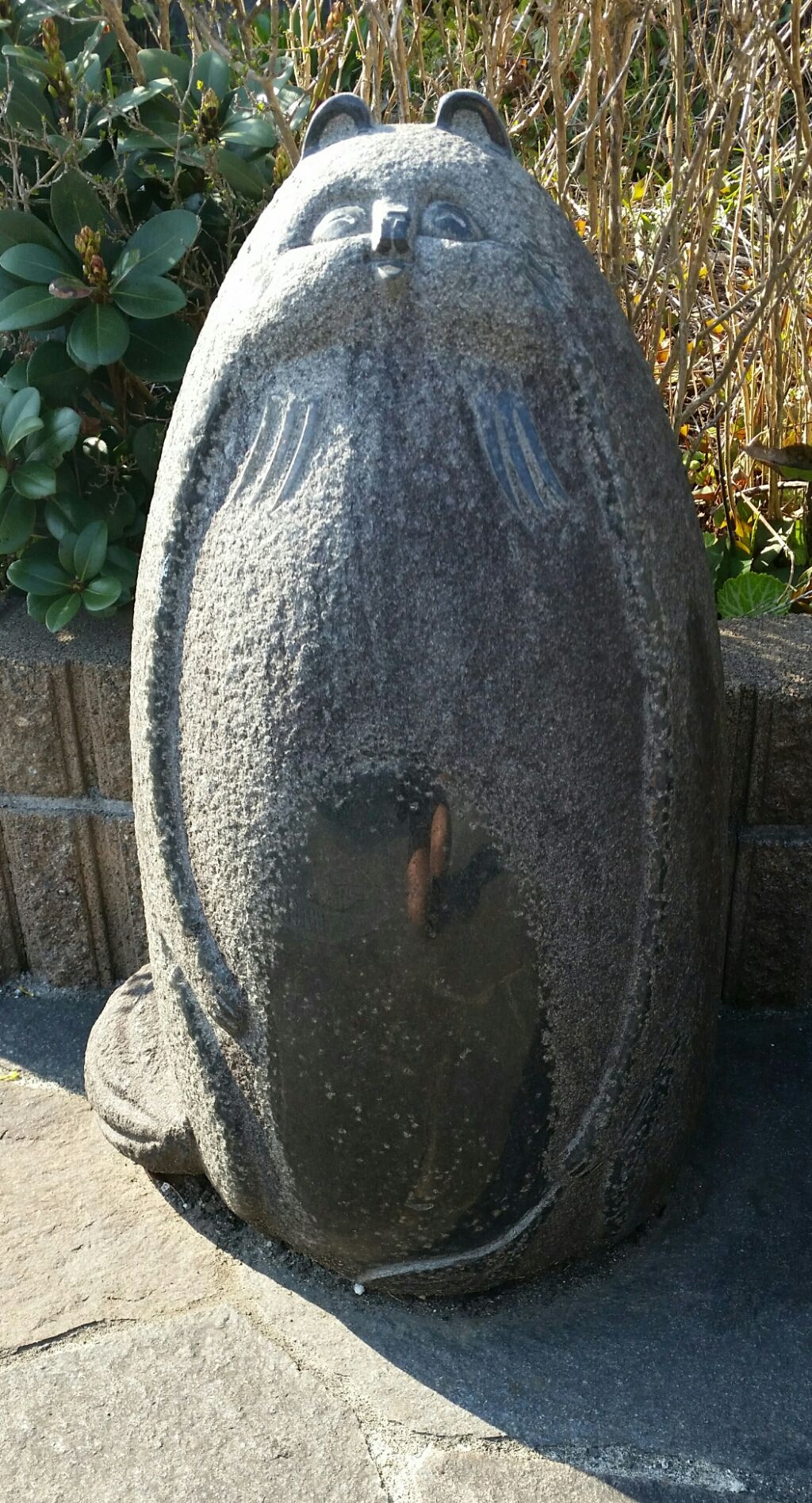 20184月1 東京都江戸川区 善徳寺 夫婦狸地蔵 東京都江戸川区東葛西にある善徳寺。お寺に入って前方のお庭に奉納された夫婦狸地蔵が鎮座。岡崎市の石彫家・原田一男さんの作品だそうです。独特なフォルムで見る人を和ませる。こちらは後ろ姿。お父さん狸一家の大黒柱。何も前面に押し出し立派です。どっこい。お母さん狸グラマラスな身体がなまめかしい。お顔もチャーミング。長男狸決してお父さんと一緒ではない。サイズは小さめ。やんちゃざかり。長女狸おっぱいがない。これからに期待。おませさん。善徳寺東京都江戸川区東葛西3丁目9−17一之江駅・葛西駅経由 バス停「浦安橋」から徒歩4分 「狸旅」カテゴリの最新記事 「東京」カテゴリの最新記事 タグ :#狸旅#東京#狸像#狸石像#寺#オリジナル コメント コメントフォーム 名前 コメント 評価する リセット リセット 顔 星 投稿する 情報を記憶