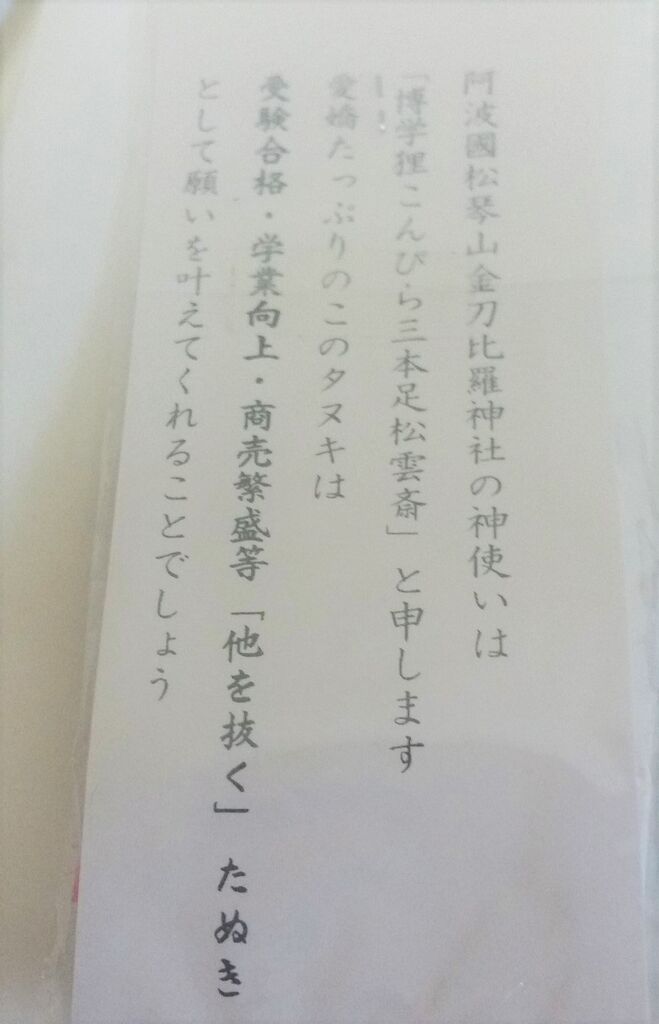 20211月18 三本足松雲斎たぬきのお守り 徳島県阿南市福井町 金刀比羅神社三本足松雲斎たぬきのお守りオリジナルで珍しい受験合格・学業向上・商売繁盛にご利益あり 「たぬきグッズ」カテゴリの最新記事 「お守り」カテゴリの最新記事 タグ :#狸グッズ#神社#お守り コメント コメントフォーム 名前 コメント 評価する リセット リセット 顔 星 投稿する 情報を記憶