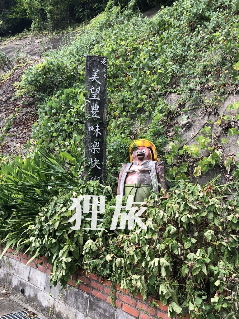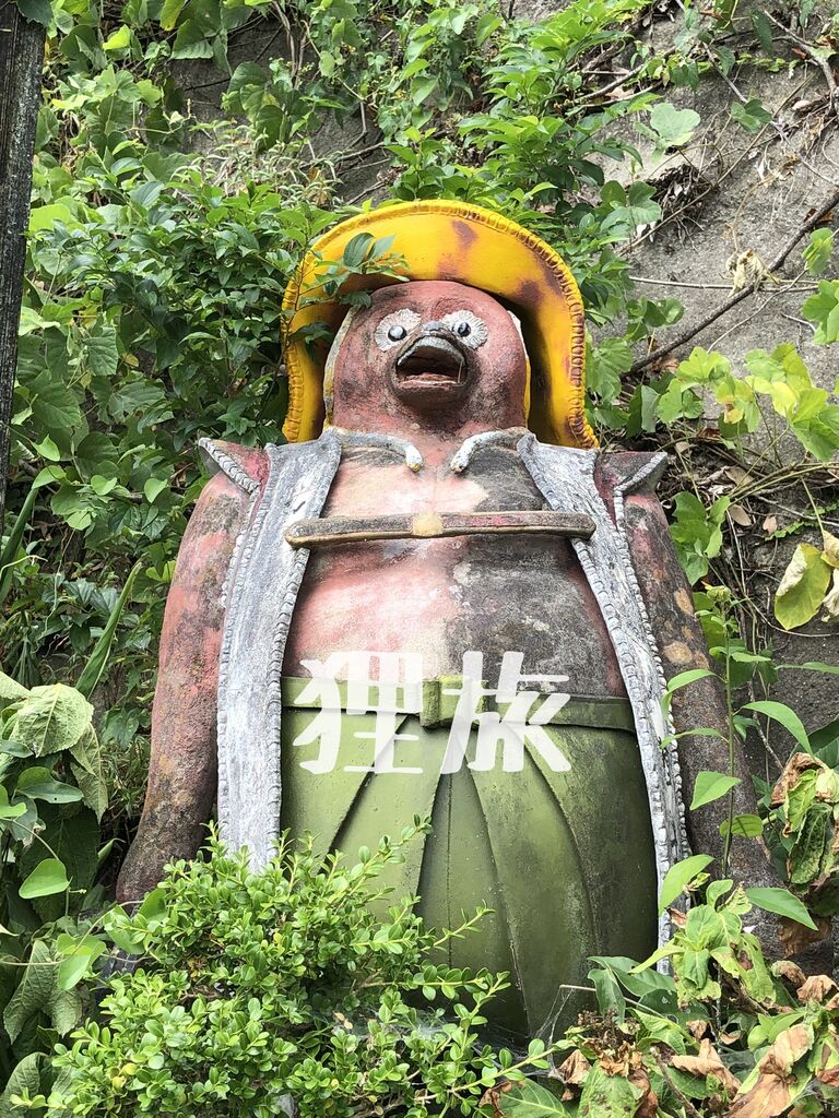 山の方へ登っていくと途中に突如現れるセメント狸。